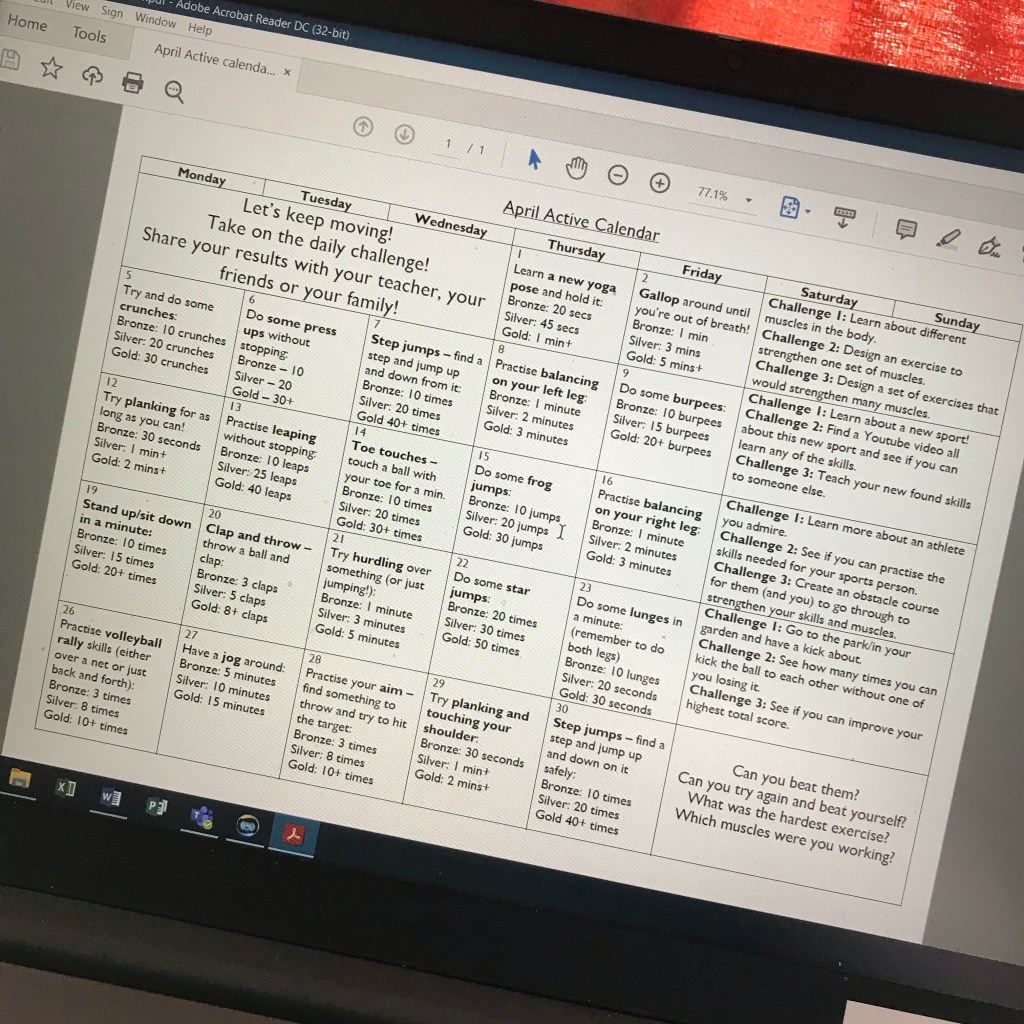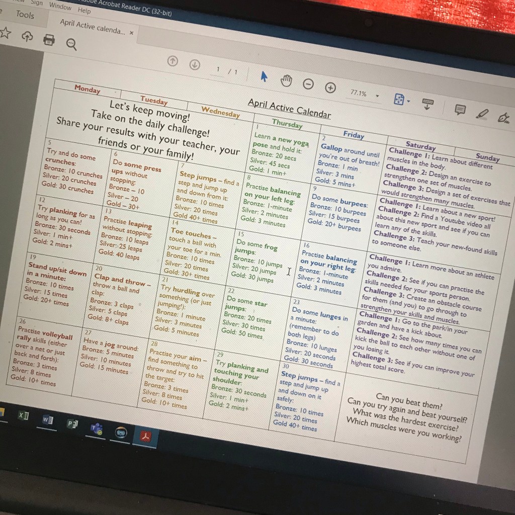 I’m back with another PE calendar. For anyone who is new around here, my PE calendars were super popular in the first lockdown and have continued to be popular over the past few months. They’re ideal for using in class with one year group, can be used across schools (not just primary!) and can be useful for keeping remote learners moving (as we all know that bubbles are still popping!).