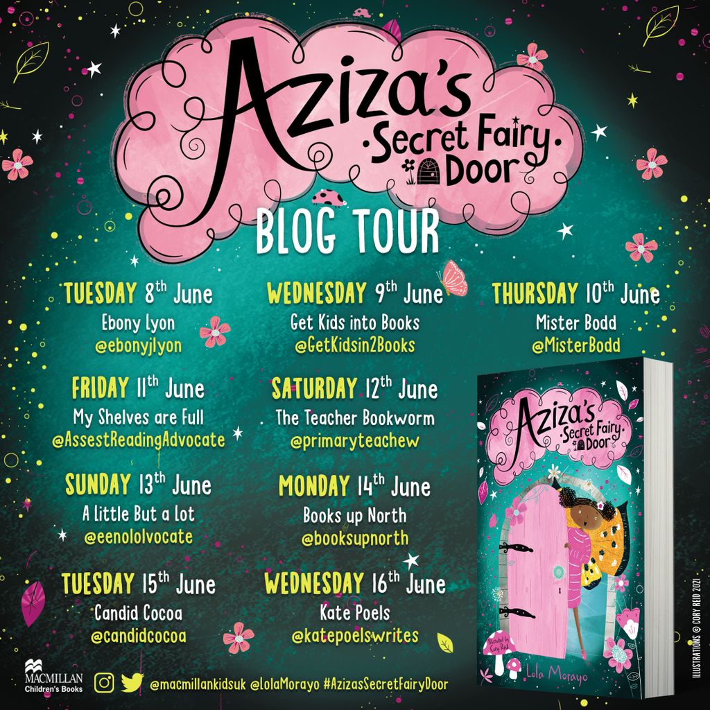 A double treat for you this Sunday! It’s my stop on the Aziza’s Secret Fairy Door blog tour and author Lola Morayo is here to tell you all about the characters in her brilliant new book!