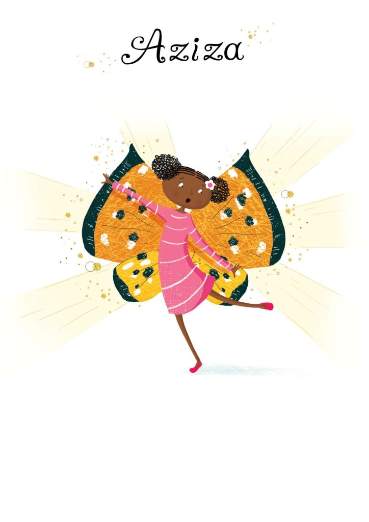 When I read about the aziza fairy creatures that appear in West African mythology, whilst doing my research, I knew that I had the perfect name. This little girl would be named Aziza – this name is one of the many golden threads that weave together to form part of her cultural heritage and is also a nod to her absolute fascination with all fairies.