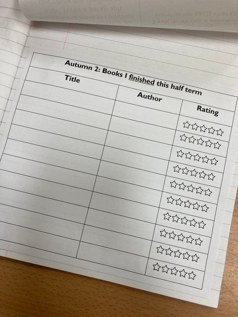 This half term, I introduced this sheet below. I’ve underlined finished because I’m a firm believer in not making children finish a book they’re not enjoying. Yes, I have some serial DNFers, but it’s something we are slowly working on. After every book a child finishes, they just do a simple rating.