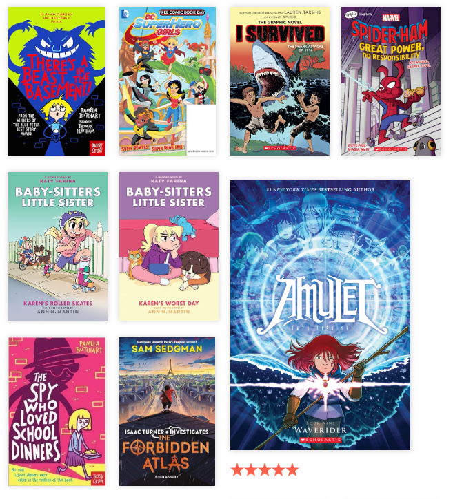 My classes continue to be obsessed with graphic novels… so I was always seeking these out second hand! The Amulet series is one that ALWAYS flies off the shelf (or out of the boxes in my case ha).
