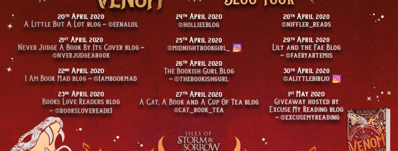 I am here today with something very exciting. As part of the blog tour for one of my most anticipated reads of the year, I have a sneak peek at the creation story of one of the islands in the Isles of Storm and Sorrow series. If you've been living under a rock, you will … Continue reading BLOG TOUR: Venom by Bex Hogan