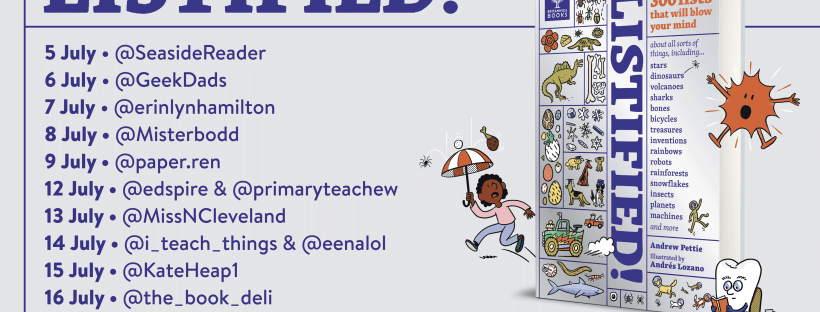 Listified: an absolute CORKER of a book! Enter the listiverse and get ready to see the world in a whole new way. Britannica's Listified! takes the best and most amazing parts of the universe - erupting volcanoes, medieval machines, jumping spiders, exploding stars and everything in between - and organises them into quirky lists for … Continue reading BLOG TOUR: Andrew Pettie